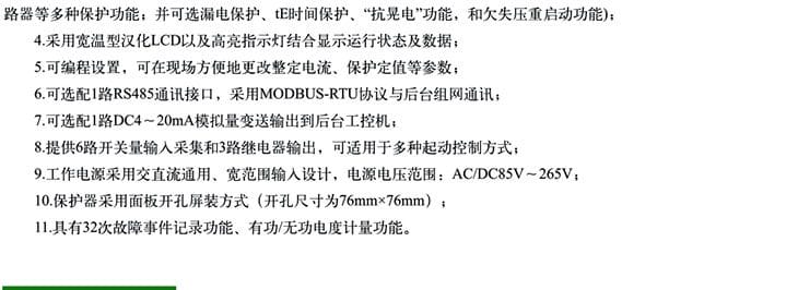 適用于AC380V、AC660V低壓系統(tǒng),有先進的電動機或線路保護、監(jiān)控功能,可同時測量顯示三相電流、三相電壓等多種電力參數(shù),并且可選現(xiàn)場總線與后臺通訊實時查看運行及保護信息。